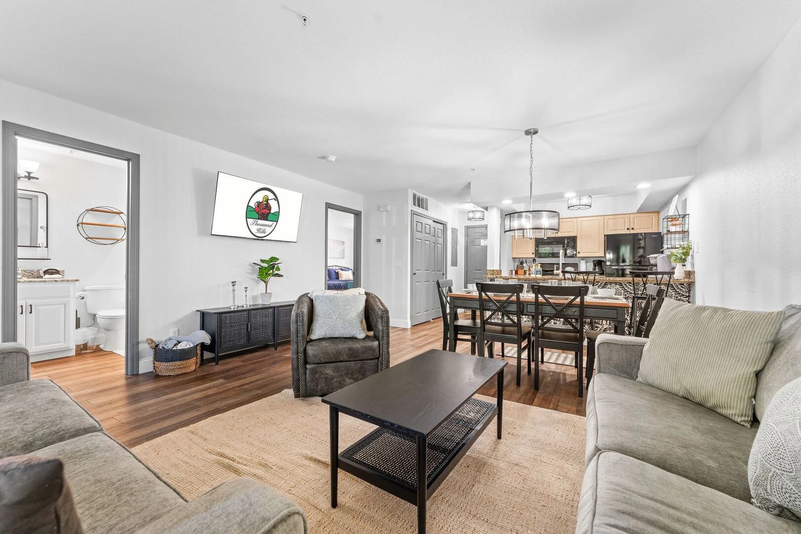 Most Thousand Hills properties feature resort‑style amenities such as indoor and outdoor pools, hot tubs, fitness facilities, and scenic walking paths.